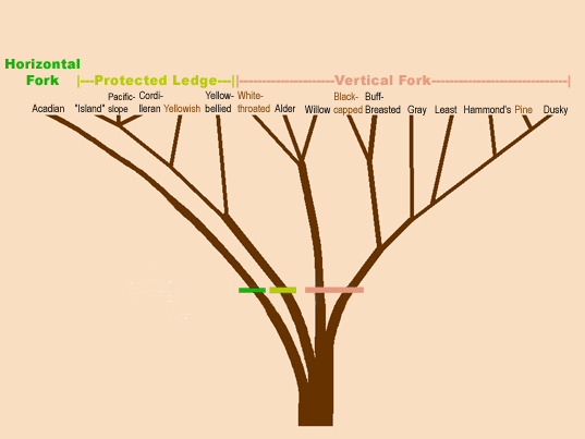 branches. Empidonax species use no less than three types of nest placement, but continue the